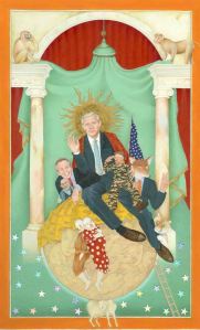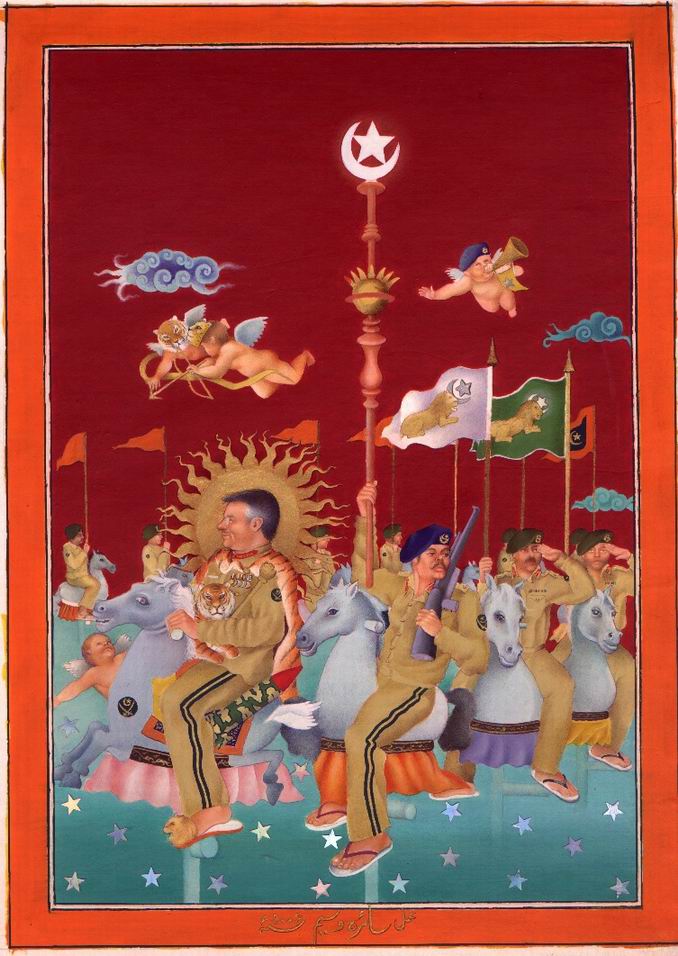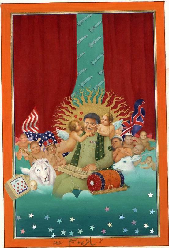 “Musharraf’s gone nuts”, is the way Asma Jahangir has described the General’s second coup d’etat. The epic miniatures of the Pakistani artist Saira Wasim, capture this madness perfectly…“Marry go round”